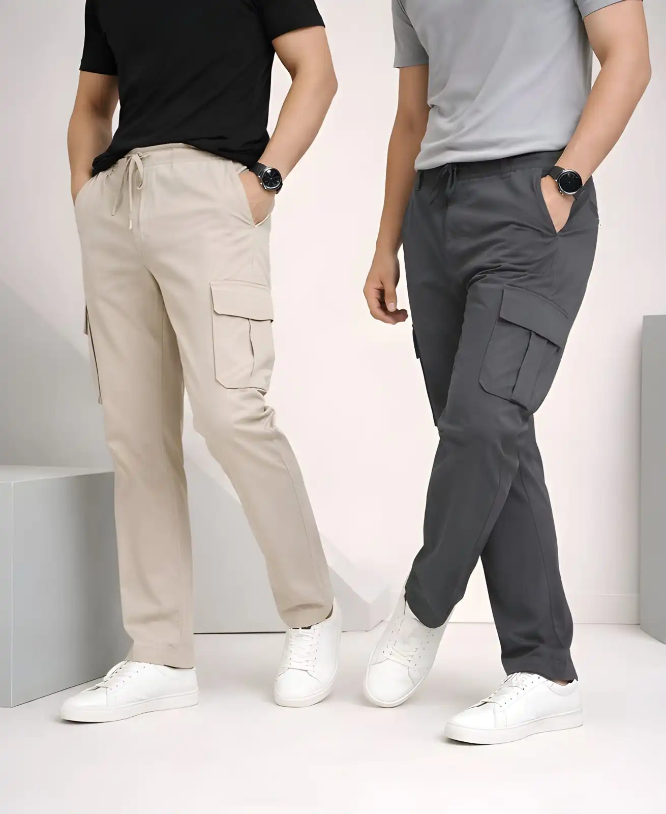 2 Piece Combo Cargo Pant ( Cream + Dark Ash )