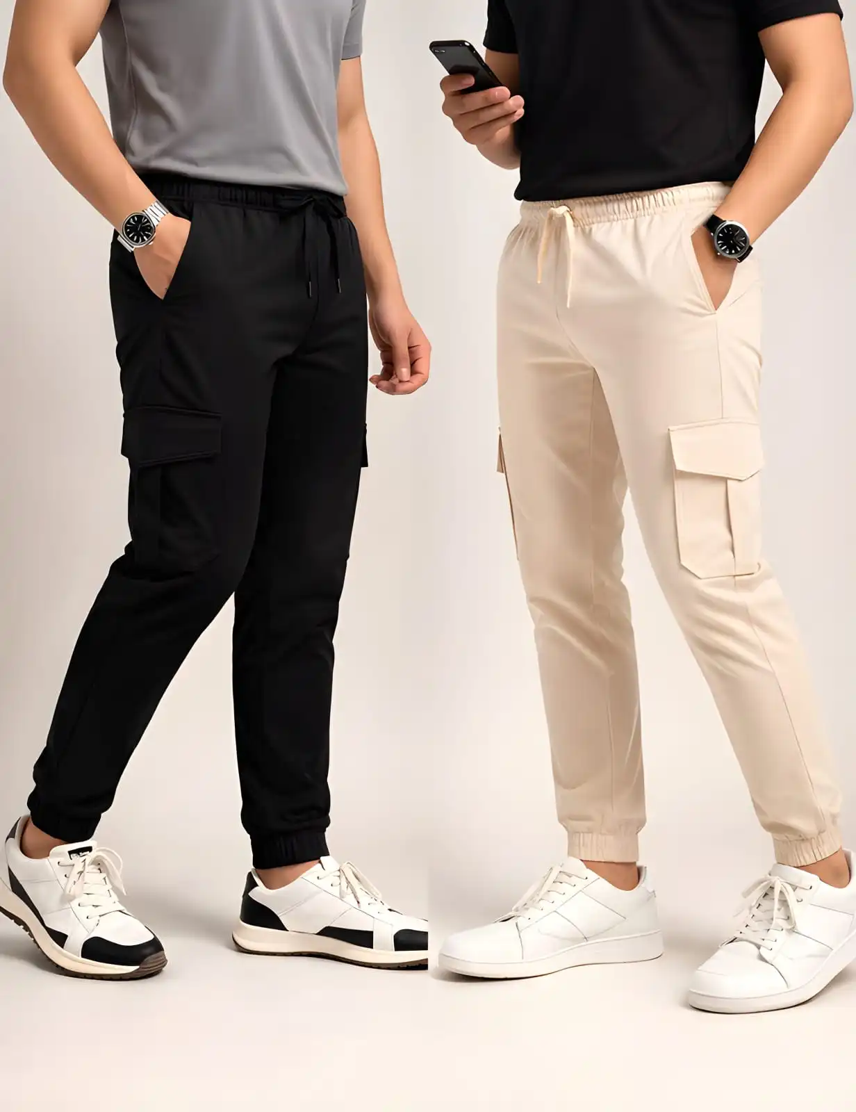 2 Piece Combo Cargo Joogers ( Black + Light Cream )